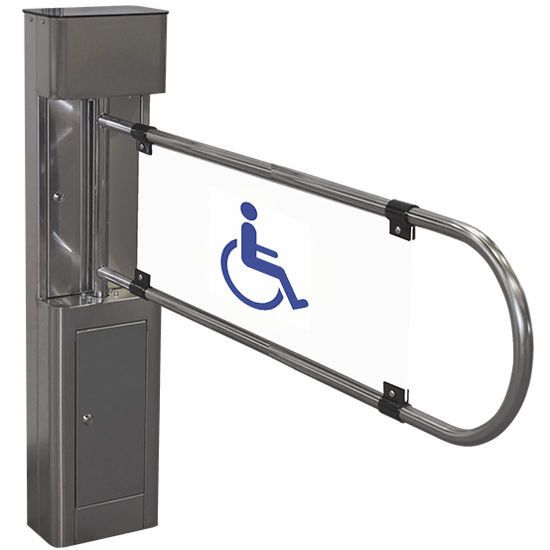 El portillo motorizado TTSPM es ideal para poner en servicio un acceso estandarizado PMR de 90 cm. Su hoja giratoria de 90 cm permite el acceso para personas con movilidad reducida cumpliendo con los estándares actuales. Bajo pedido especial, existe la posibilidad de hoja a medida de 60 a 120 cm.