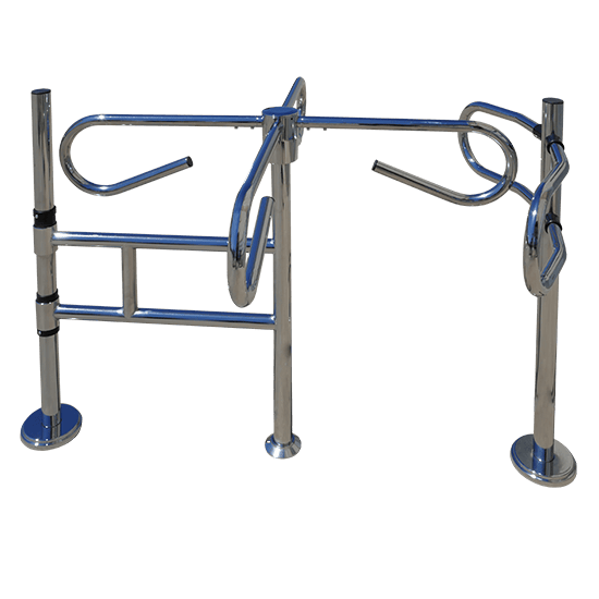 Le portillon motorisé bidirectionnel est fait pour ça. Lorsque l'adhérent badge sur le lecteur ou lit le QR code sur son smartphone, le battant rotatif du portillon PMR s'ouvre automatiquement et dégage un accès d'une largeur réglementaire de 90cm. Le portillon permet à votre salle de sport que toutes les catégories de membres puissent entrer facilement, en assurant le respect des normes en vigueur en termes d'accessibilité